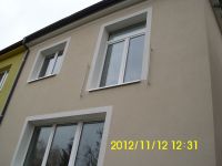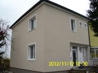 Původní dvojdomek s požadavkem na jeho zateplení v pravé polovině ukazuje, jak lze pomocí KZS Extherm jednu polovinu zviditelnit na úkor druhé. Byly zachovány původní barevné (bílé) detaily okolo oken a podhled pod okapem. Dům nyní září svou čistotou provedení i vhodnou barvou.
